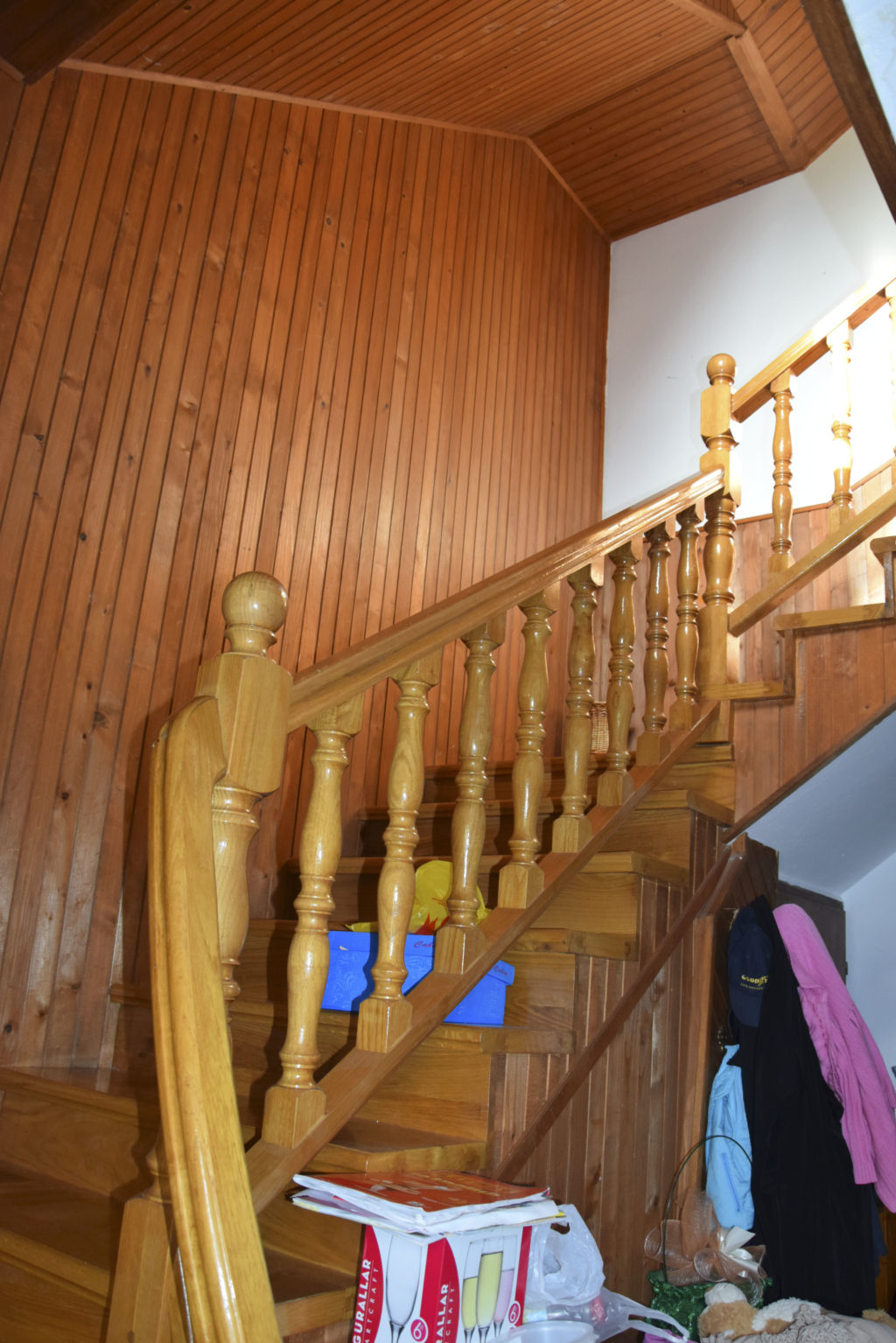На втором этаже три спальных комнаты и ванная комната. Две террасы. На третьем этаже 2 комнаты и ванная комната. Красивая деревянная лестница, много отделки деревом.