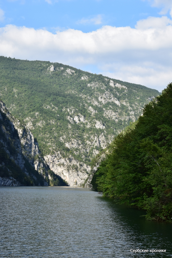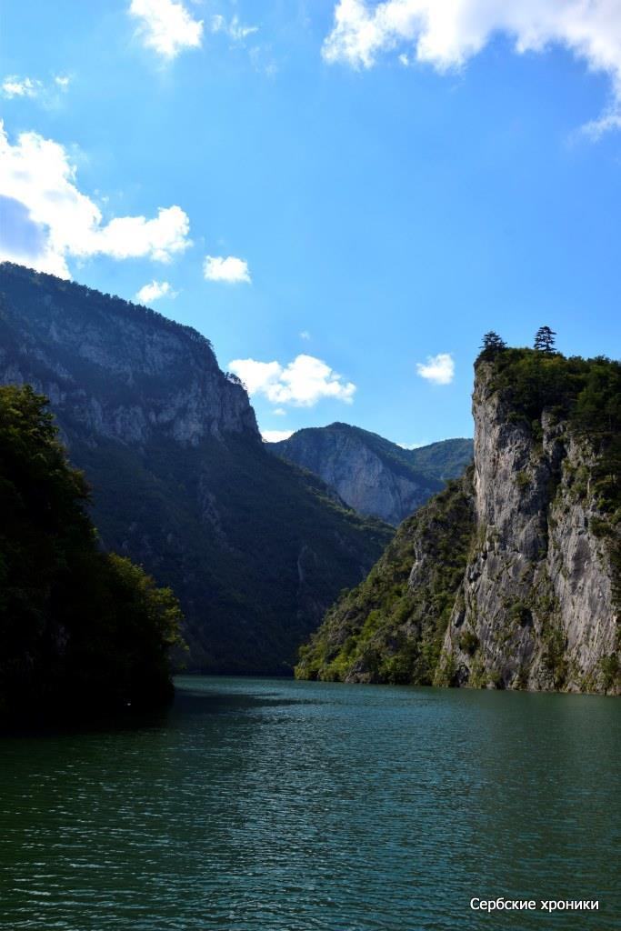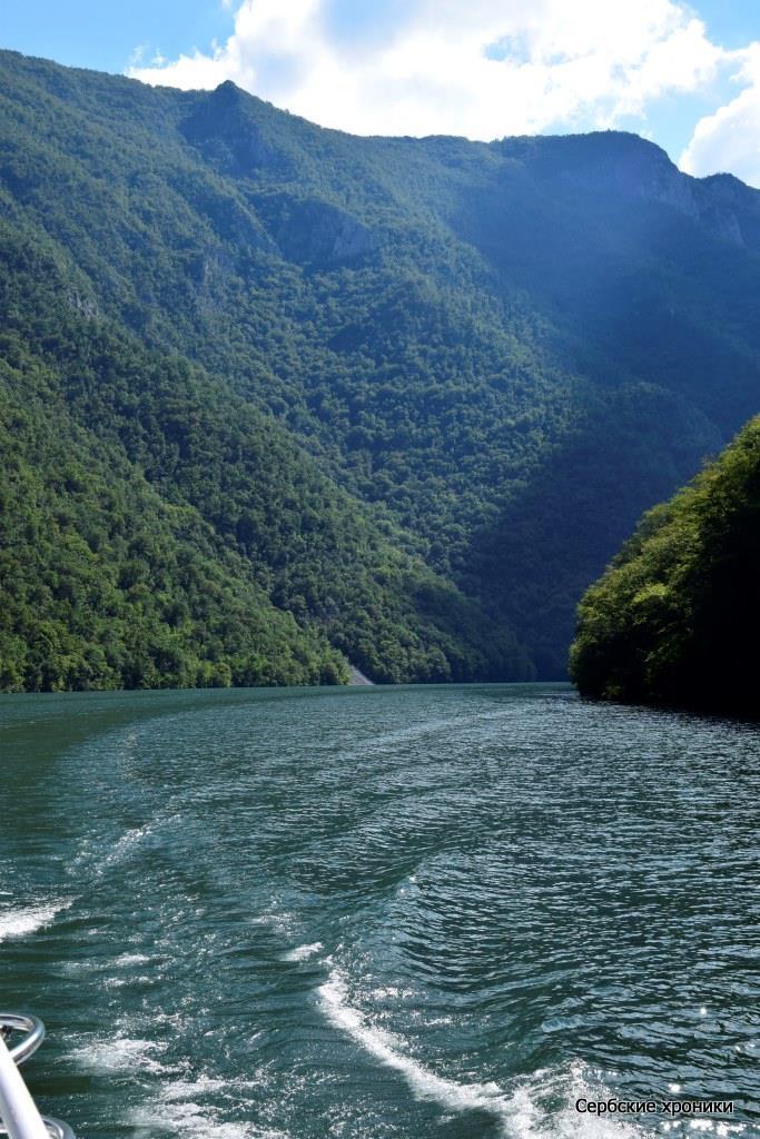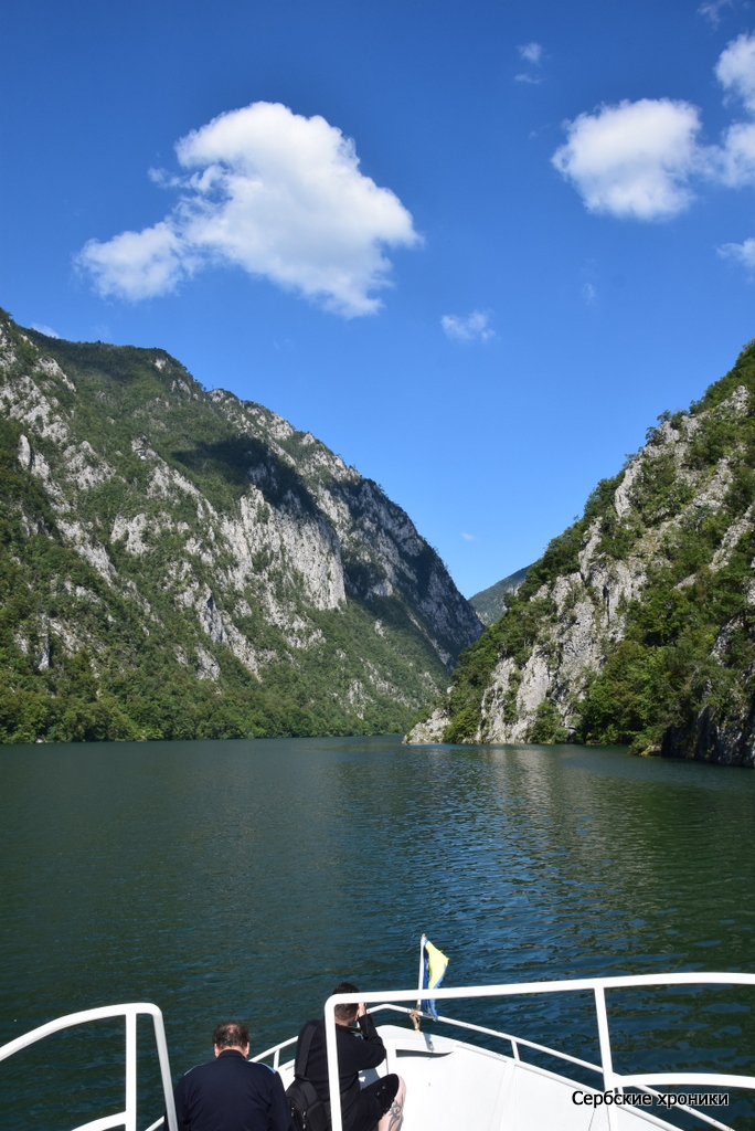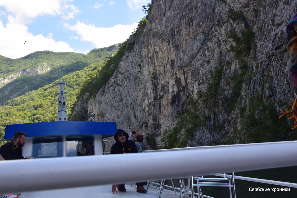 Единственное, что мешало видеть — это холод. В какой-то мере прохладная погода, предварявшая наше путешествие, оказала нам добрую услугу — у нас были с собой хоть и летние, но куртки, которые не только не были лишними при солнечной погоде, но напротив, казались слишком легкими. В этом самом дринском каньоне, над рекой между высоких гор носится леденящий, совершенно не сербский, не южный пронизывающий ветер. Конечно, русский человек, и не к тому привыкший, в состоянии, обхватив себя руками, достаточно долго держаться на верхней палубе, любуясь окружающими красотами. Но и ему это даром не проходит: южное солнце остается южным солнцем, светит оно здесь так же ярко, как и на равнине с той лишь разницей, что жар его здесь не чувствуется вовсе. Обгоревшее под его лучами лицо даст о себе знать уже вечером, дома.