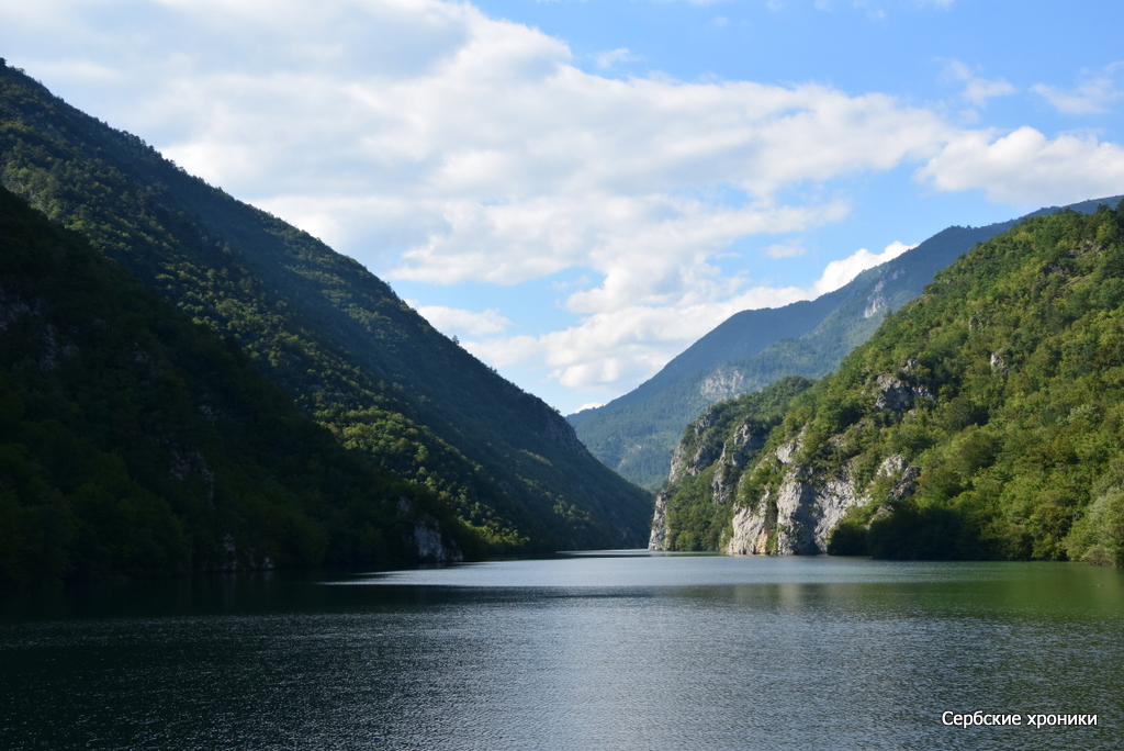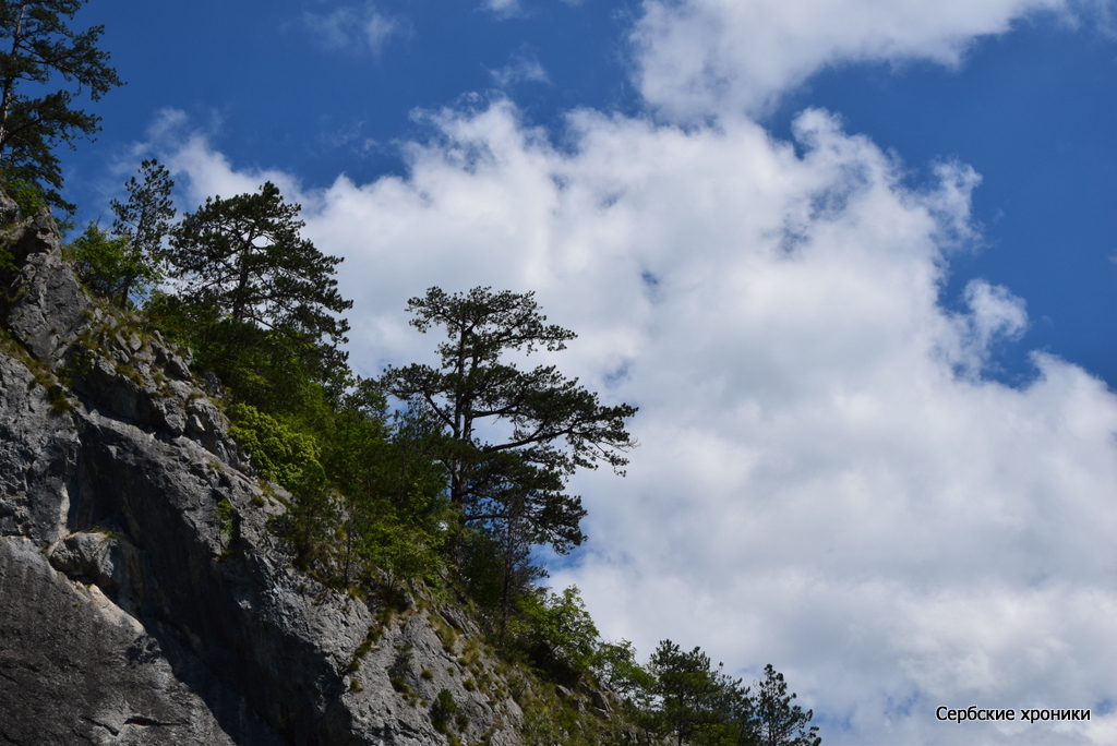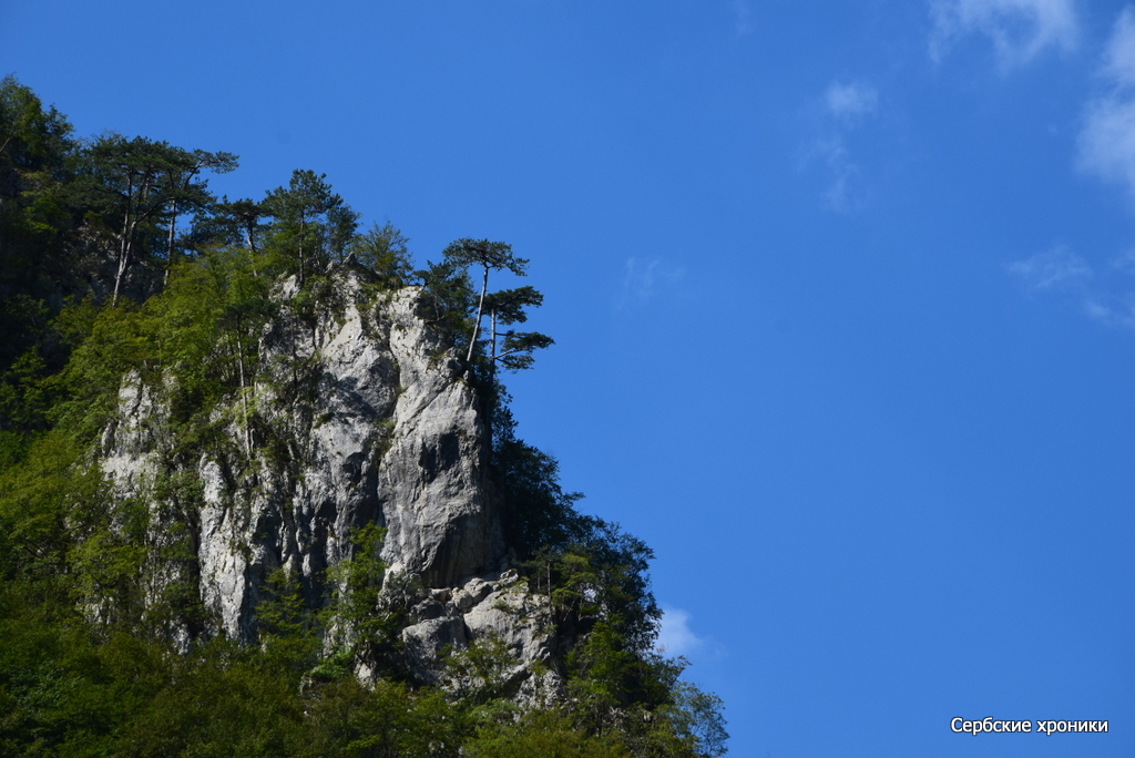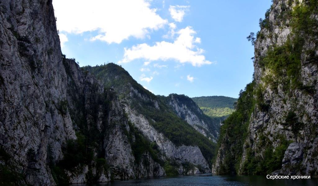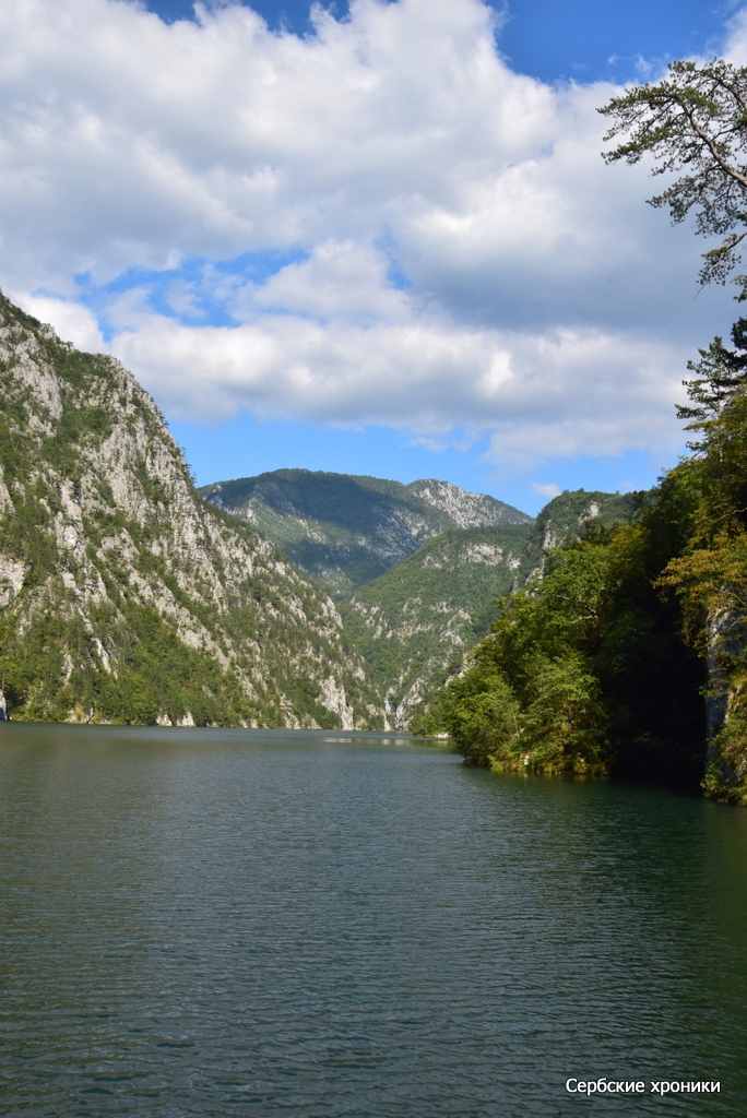 Единственное, что мешало видеть — это холод. В какой-то мере прохладная погода, предварявшая наше путешествие, оказала нам добрую услугу — у нас были с собой хоть и летние, но куртки, которые не только не были лишними при солнечной погоде, но напротив, казались слишком легкими. В этом самом дринском каньоне, над рекой между высоких гор носится леденящий, совершенно не сербский, не южный пронизывающий ветер. Конечно, русский человек, и не к тому привыкший, в состоянии, обхватив себя руками, достаточно долго держаться на верхней палубе, любуясь окружающими красотами. Но и ему это даром не проходит: южное солнце остается южным солнцем, светит оно здесь так же ярко, как и на равнине с той лишь разницей, что жар его здесь не чувствуется вовсе. Обгоревшее под его лучами лицо даст о себе знать уже вечером, дома.